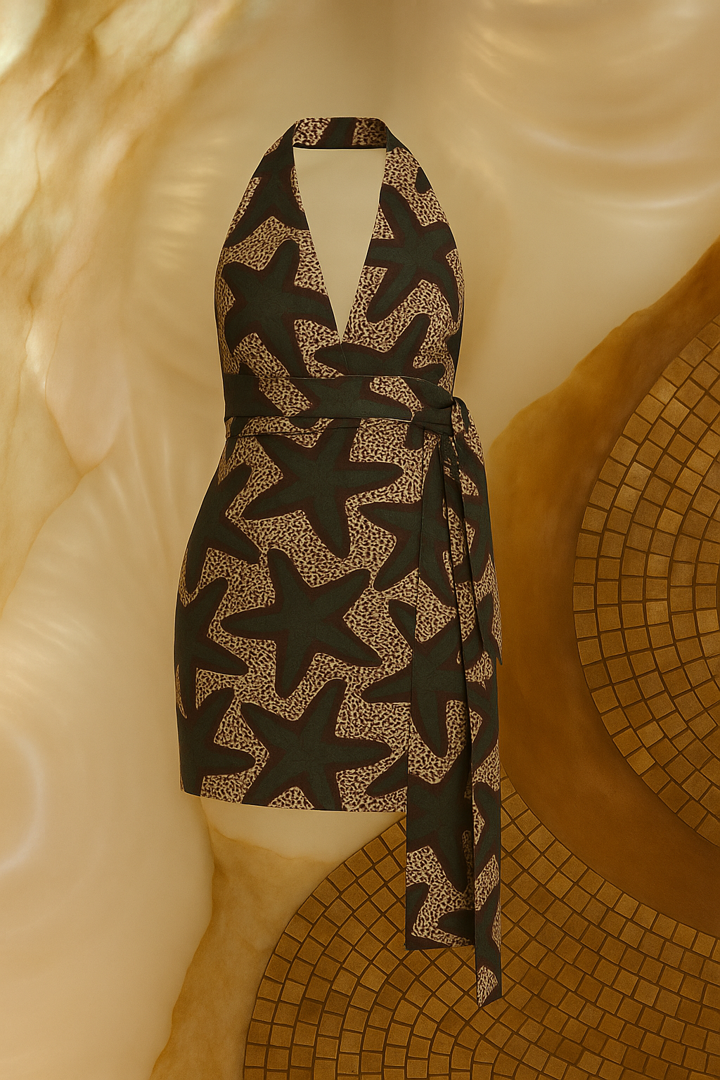 The Starstruck Mystique is luxury with a secret edge. Dark, sultry tones meet the boldness of African print, creating a look that’s equal parts elegant and untouchable. She’s made for candlelit dinners, late-night oceanside walks, and every moment that calls for quiet power.